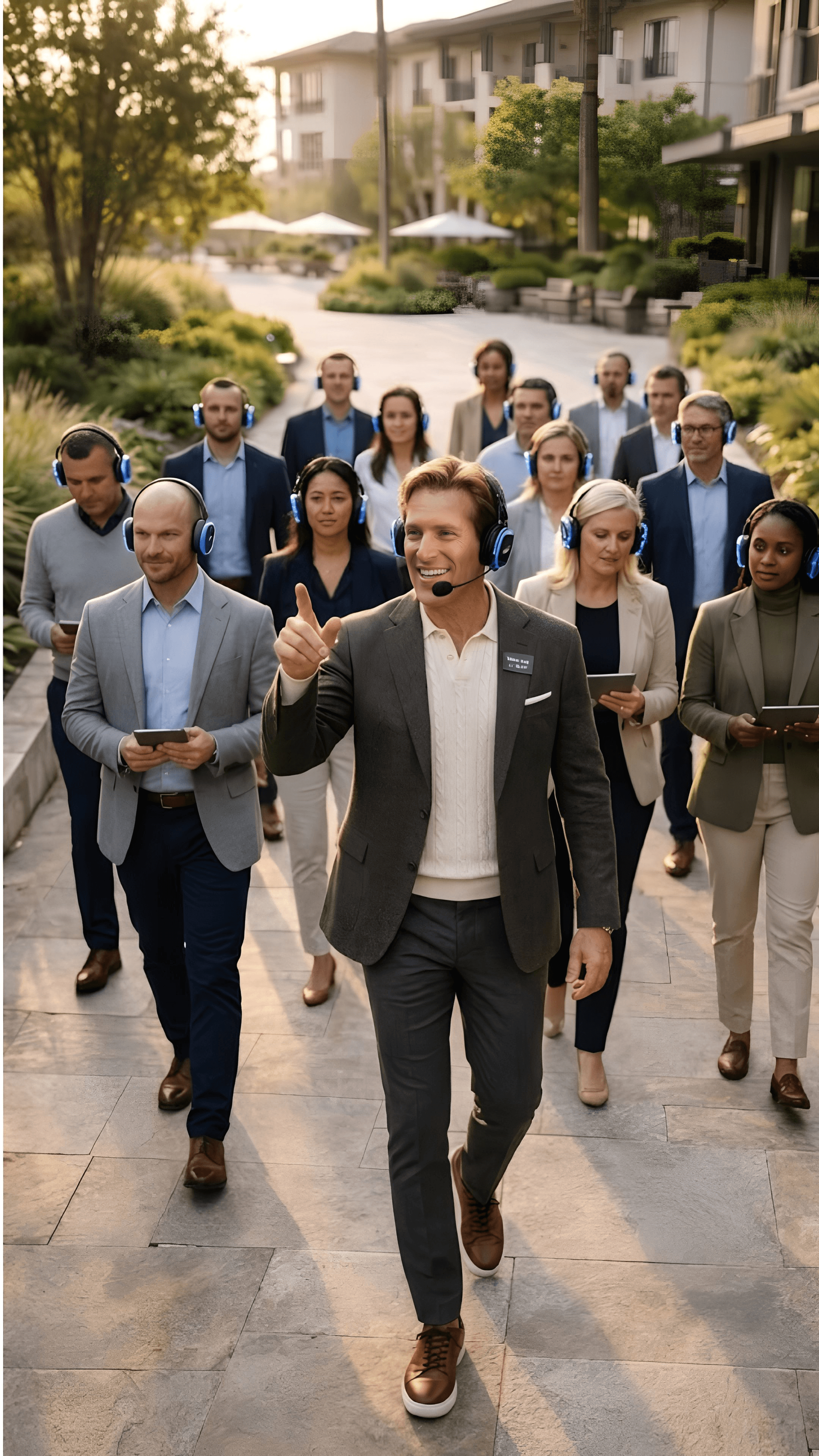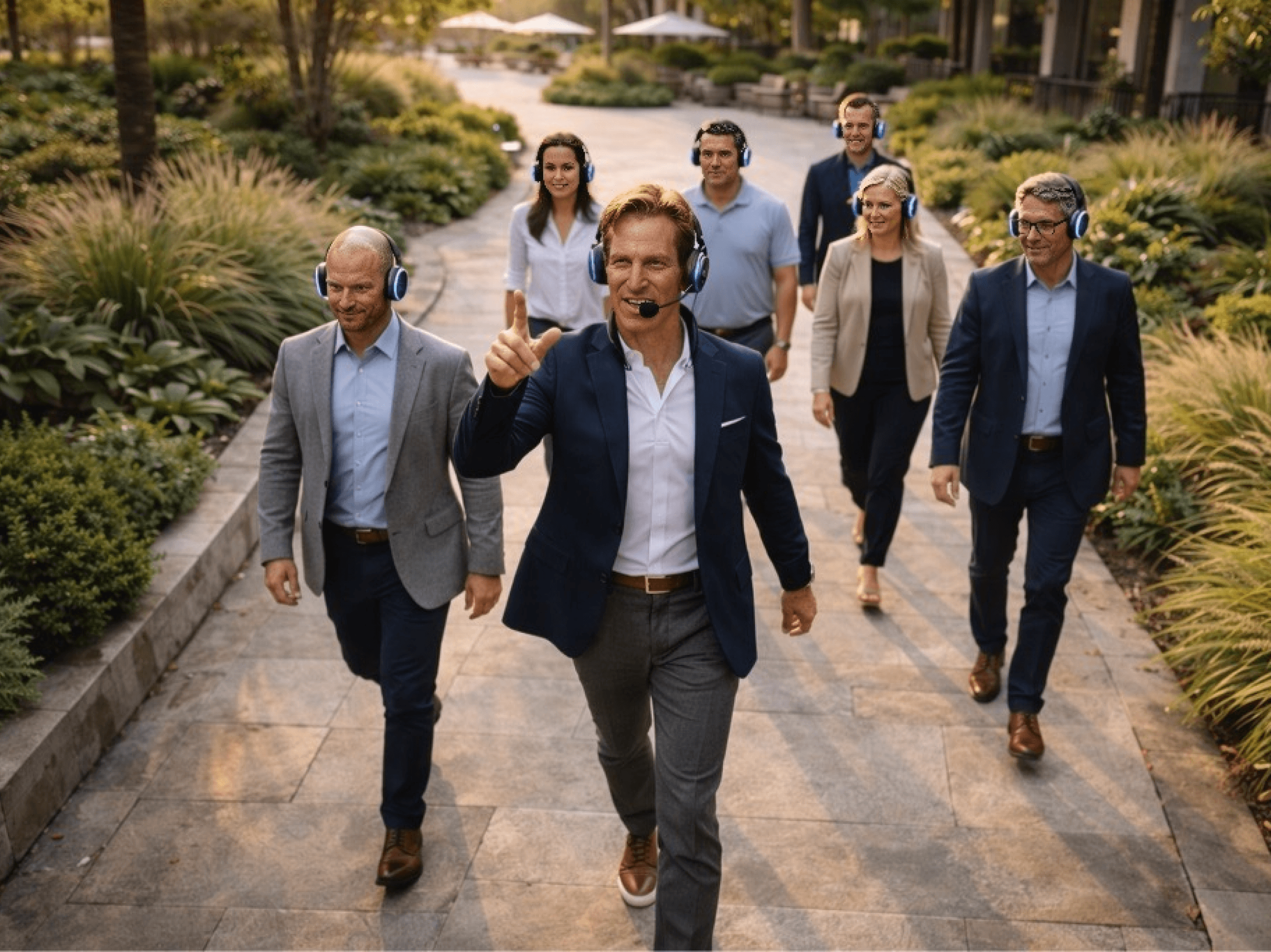 A guided leadership immersion blending walking, cinematic audio storytelling, and structured reflection for leaders seeking breakthrough clarity.